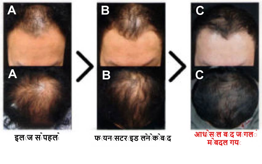 फोटो बी से सी में फायनास्टराइड से ज़ागलो पर स्विच करने के 24 सप्ताह (आधा वर्ष) होते हैं, लेकिन बालों के विकास के प्रभाव में एक बड़ा बदलाव होता है।